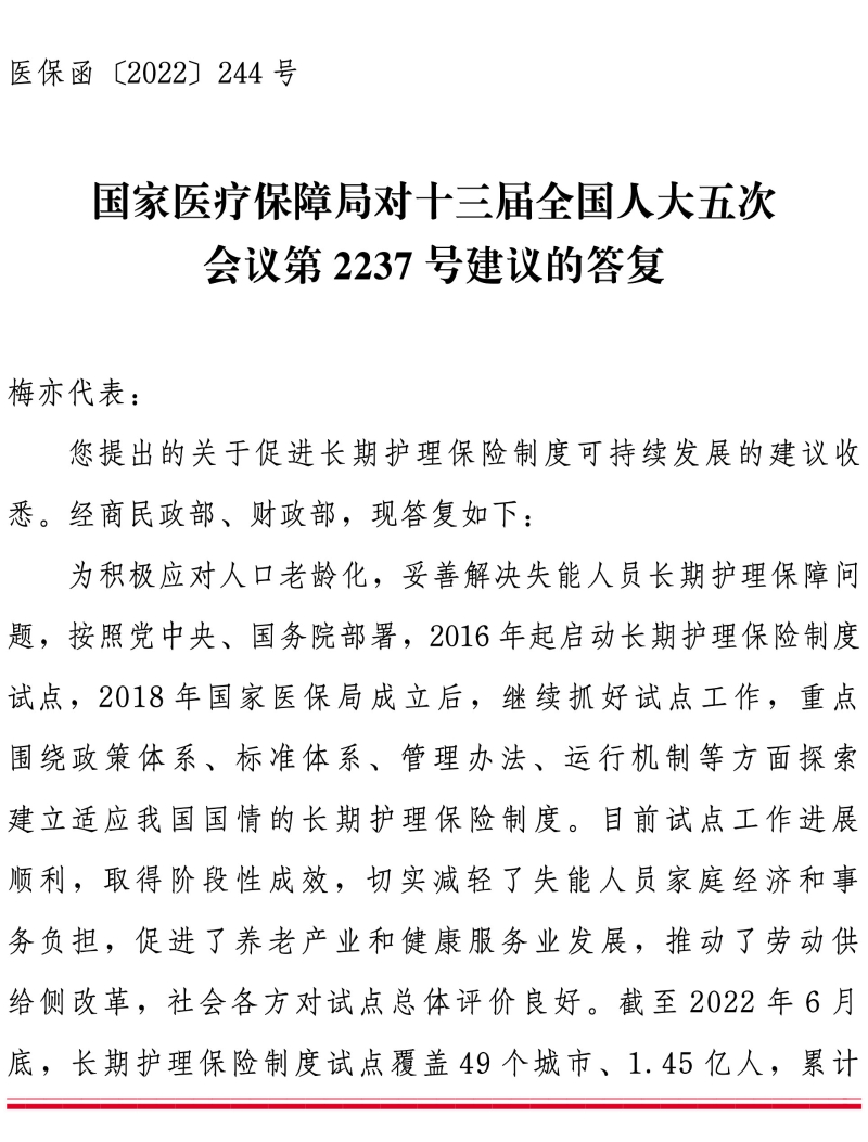 (医保函[2022]244号)对十三届全国人大五次会议第2237号建议的答复