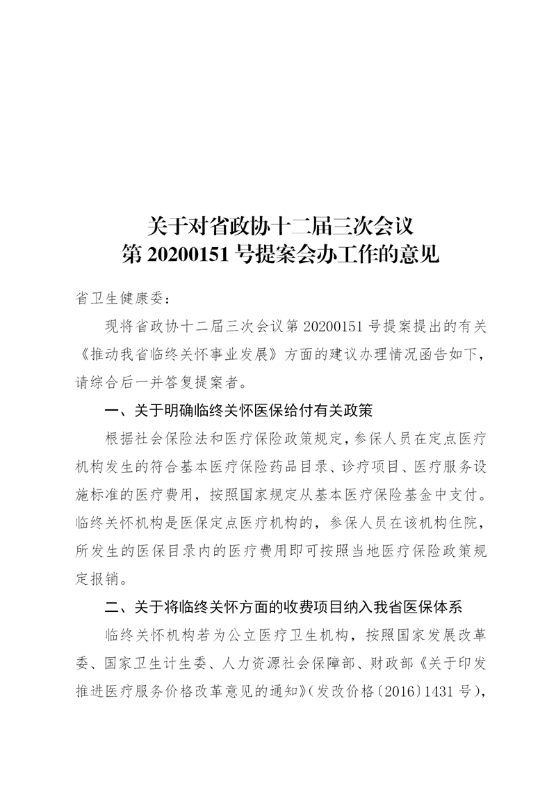 湖北省医疗保障局对省政协十二届三次会议第20200151号提案会办工作的意见