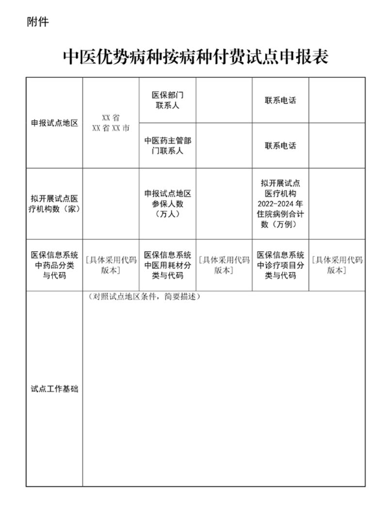为贯彻落实党中央、国务院关于促进中医药传承创新发展重要部署,探索实施适合中医药特点的医保支付方式,更好满足人民群众对中医药服务的需求,现就开展中医优势病种按病种付费试点工作有关事项通知如下。