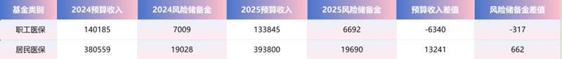 某地2024-2025年医保预算收入、风险储备金(单位:万元)