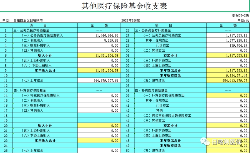 (西藏-日喀则)日喀则市2022年第二季度基本医疗保险收支数据公示